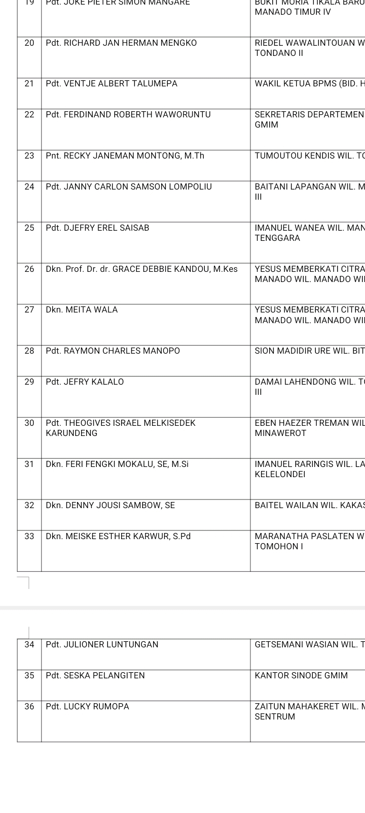 Kata Steven Kandouw, setelah dilakukan validasi, panitia mengumumkan para calon BPMS GMIM.”Hari ini pengumuman nominasi BPMS sudah dibuka dan sudah terjaring 36 nominator setelah dilakukan validasi BPMS. Ini baru DCS ( Daftar Calon Sementara), nanti tanggal 30 Maret ditetapkan sebagai Daftar Calon Tetap (DCT),”tegas Kandouw.