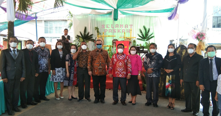 Bupati Kabupaten Kepulauan Talaud DR.dr. Elly Engelbert Lasut ME mengikuti Prosesi Ibadah Paskah Minggu (17/04/2022).