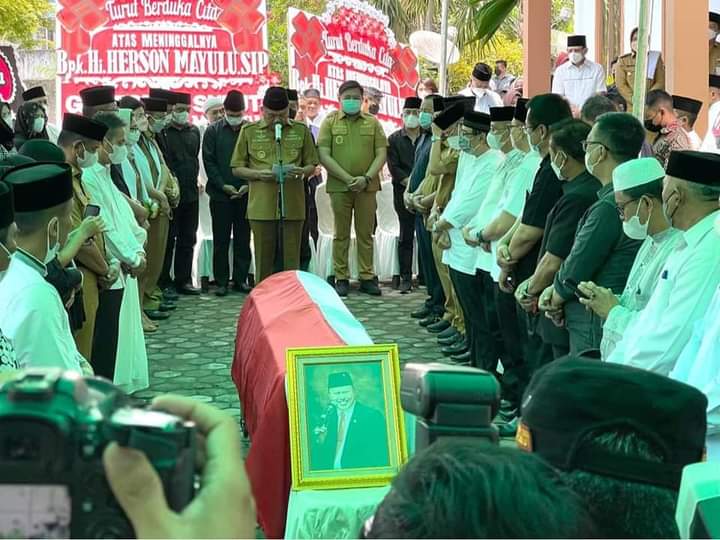 Manado– Jenazah Herson Mayulu, dilepas Gubernur Sulut Olly Dondokambey di rumah duka di Kotamobagu, sebelum di makamkan di perkuburan keluarga di Bolaang Mongondow Selatan, Senin (18/04/2022)