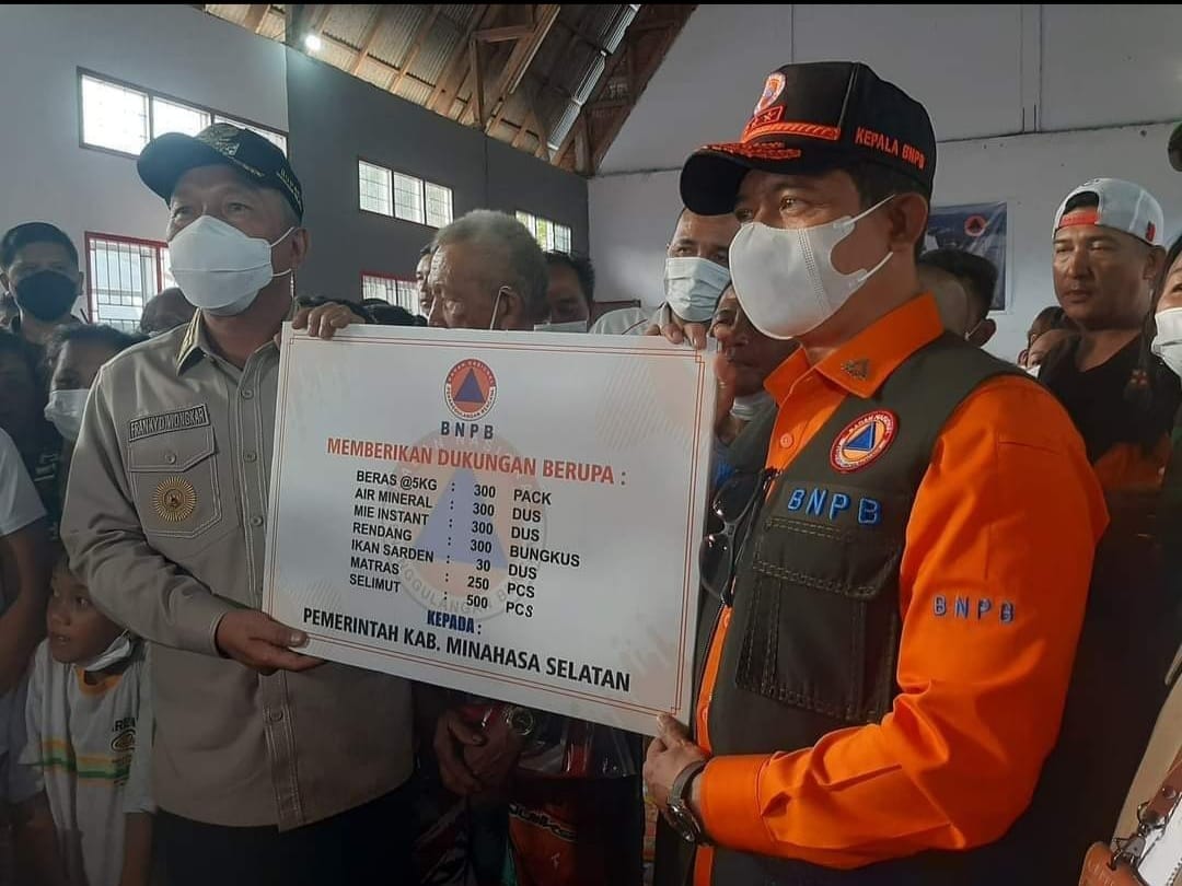 Selain meninjau langsung lokasi bencana, Kepala BNPB dan rombongan yang didampingi Bupati Minsel Franky Donny Wongkar SH (FDW) juga menyalurkan bantuan tanggap darurat DSP sebesar Rp.500.000.000 (Lima Ratus Juta Rupiah) kepada Pemkab Minsel yang diterima langsung Bupati Minsel Franky Donny Wongkar SH.
