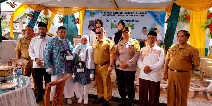 SEPUTARSULUTNEWS, TALAUD – Kapolres Kepulauan Talaud AKBP Dasverry Abdi, SIK menghadiri serta dampinggi Bupati Kabupaten Kepulauan Talaud Dr. dr. Elly Engelbert Lasut, dalam Pelepasan/Pemberangkatan Calon Jamaah Haji Kabupaten Kepulauan Talaud Tahun 2022.