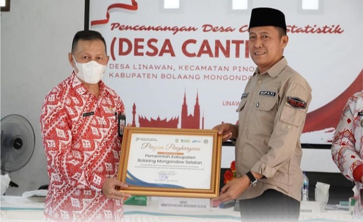 Bolsel–Bupati H. Iskandar Kamaru SPt menghadiri acara pencanangan Desa Cinta Statistik (Desa Cantik) yang dilaksanakan di Balai Desa Linawan Kecamatan Pinolosian.