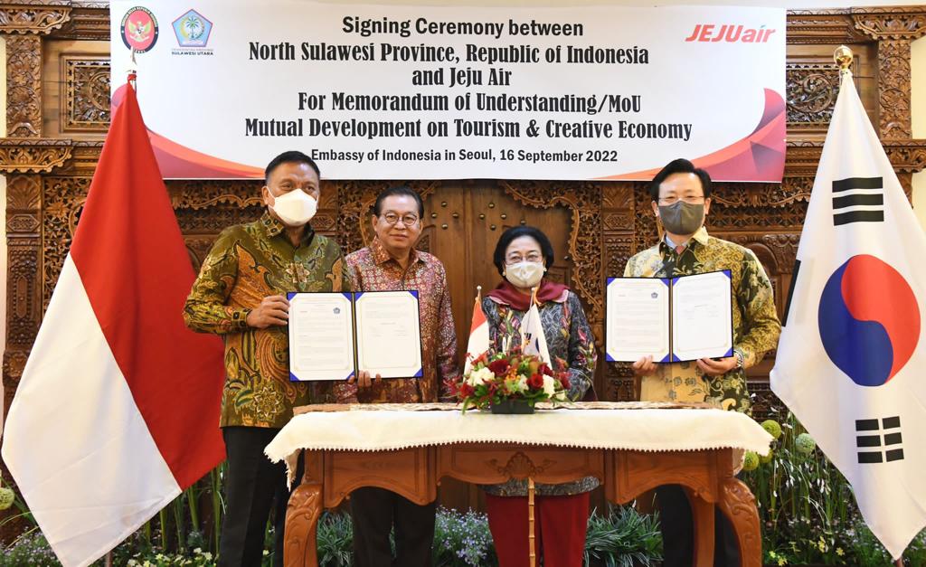 Manado–Penandatanganan Nota Kesepahaman Jeju Air dan Pemerintah Provinsi Sulawesi Utara adalah bukti bahwa pariwisata Indonesia menarik bagi masyarakat Korsel.