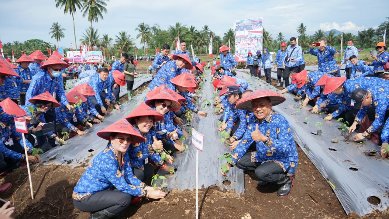 Program Pertanian, Gubernur Olly mencanangkan Gerakan “Marijo Bakobong” dan Aparatur Sipil Negara (ASN) Menanam tepat di momen Hari Ulang Tahun (HUT) Korps Pegawai Republik Indonesia (KORPRI) ke-51. Kegiatan tersebut dilaksanakan di Kawasan Perkebunan, Jl. Ir. Soekarno Kabupaten Minahasa Utara, Selasa (29/11/2022). Dimana Gubernur Olly menjadi Inspektur Upacara dan turut hadir Wakil Gubernur Steven O.E. Kandouw, Plh Sekdaprov Sulut Steve Kepel, Sekda Minut bersama seluruh pejabat Pemprov Sulut, dan Pemkab Minut.