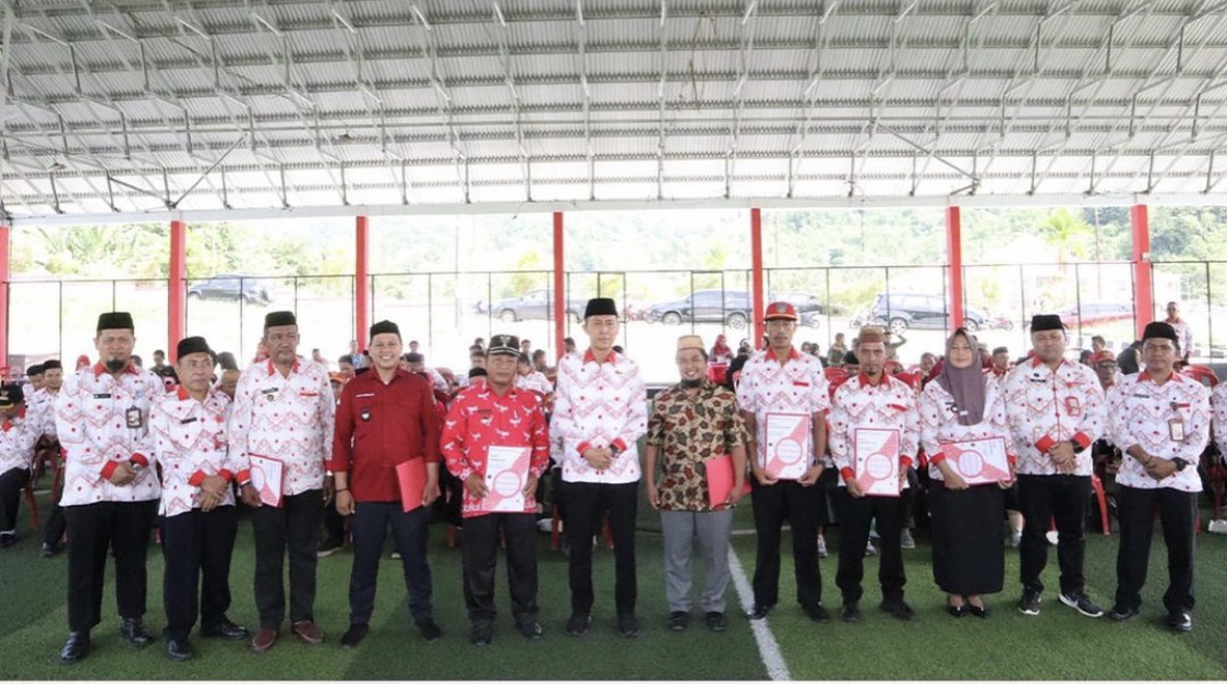Bolsel–Bupati H. Iskandar Kamaru SPt, MSi menyerahkan Dana Desa secara simbolis kepada para Sangadi se-Kabupaten Bolsel saat acara Penyerahan Pagu ADD dan DD serta Rapat Koordinasi Penanggulangan Kemiskinan Daerah Tahun 2023 yang dilaksanakan di Lapangan Futsal Kawasan Perkantoran Panango, Kecamatan Bolaang Uki.