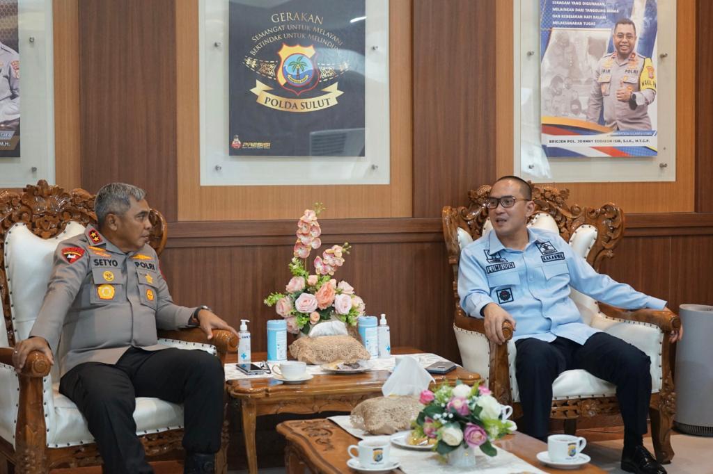 Disambut langsung oleh Kapolda Sulut, Setyo Budiyanto bersama Direktur Direktorat Reserse Kriminal Umum, Gani Siahaan di ruang kerja Kapolda. Audiensi berlangsung dengan hangat sambil berbincang tentang masing-masing tugas dan fungsi.