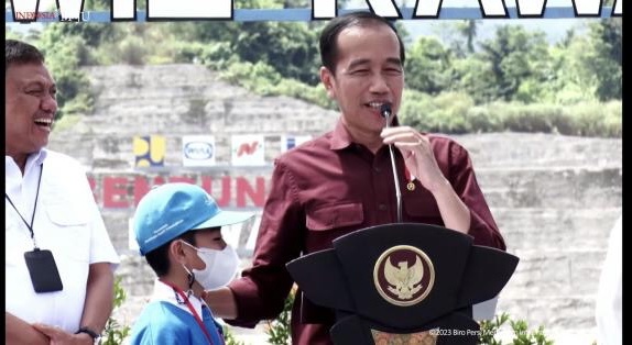 Jokowi pun mulai memberikan pertanyaan kepada para pelajar yang hadir. Dirinya menanyakan nama dari bendungan yang akan diresmikannya itu.