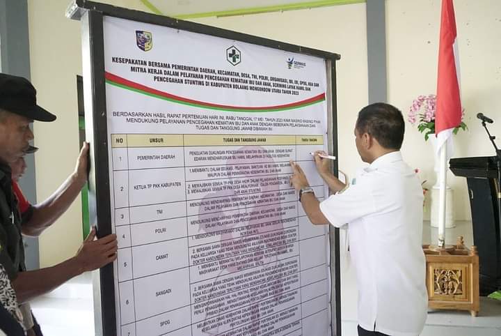 Melalui momentum ini Pemerintah Daerah dalam hal ini diwakili oleh Sekretaris Daerah, berharap kiranya dapat terlaksana kesepakatan bersama Pemerintah Daerah, Kecamatan, Desa, TNI/Polri, Organisasi IBI, IDI, S.Pog, KUA, dan mitra kerja (mama biang) dalam pelayanan pencegahan kematian ibu dan anak, Scrining layak hamil dan pencegahan Stunting di Kabupaten Bolaang Mongondow Utara.
