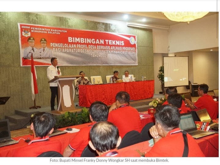 Minsel–Pemerintah Kabupaten Minahasa Selatan (Minsel) saat ini melakukan penguatan data profil desa sebagai dasar perencanaan pembangunan desa berkelanjutan, kata Bupati Minsel Franky Donny Wongkar SH (FDW) saat membuka Bimtek Profil Desa dan Kelurahan (Prodeskel) yang dilaksanakan di Hotel Sutan Raja Amurang, Jumat (19/5).