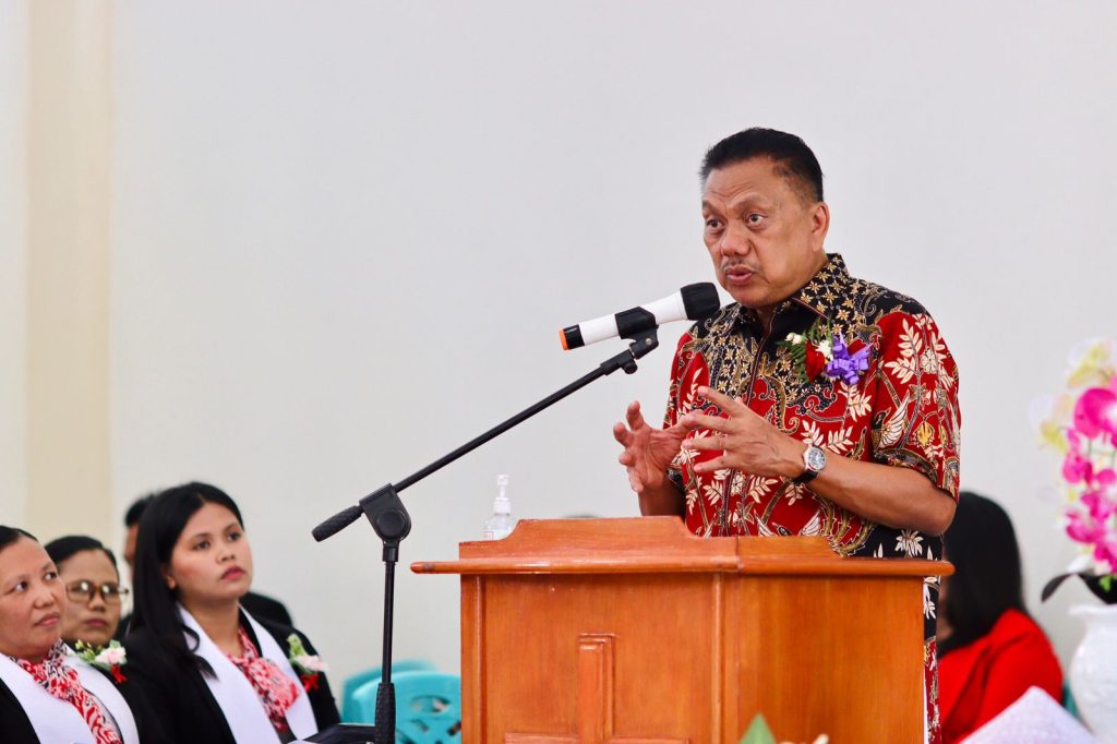 Selanjutnya dikatakan, tugas dan tanggung jawab gereja sangat penting. Dengan membantu jemaat ketika ada permasalahan.“Salah satu contoh yaitu penanganan stunting. Tugas pemerintah dan gereja itu saling mengisi. Karena anak-anak generasi penerus, yang akan melayani kita kedepan, meneruskan pekerjaan yang sudah kita kerjakan, ini harus kita jaga dengan baik, jangan sampai generasi kita kedepan mundur dari kita. Padahal generasi sekarang harus lebih baik. Jadi kita harus jaga bersama-sama. Karena penanganan stunting bukan tugas pemerintah tapi juga gereja,” ungkap Gubernur.