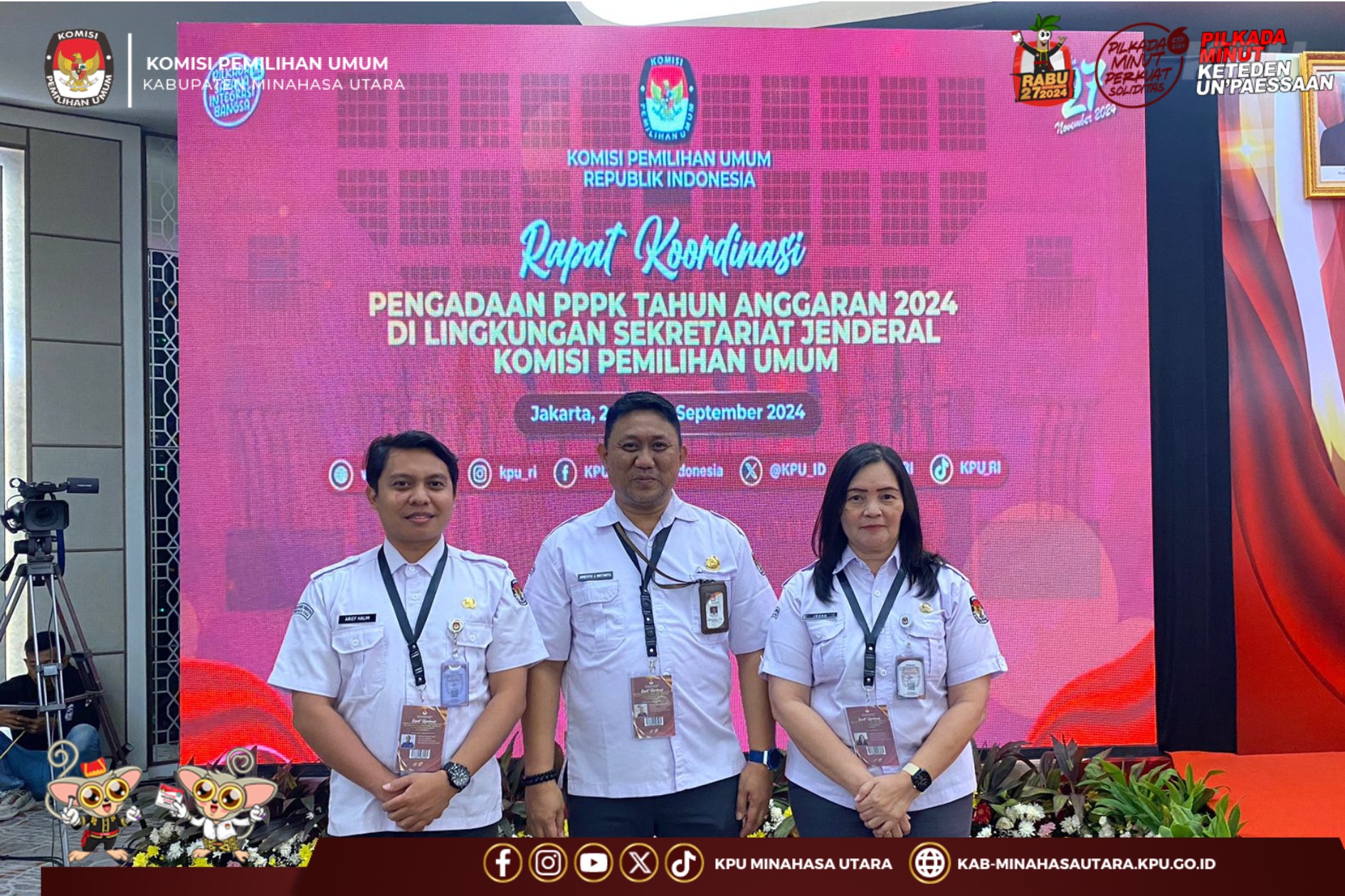 Seputarsulutnews.co, Jakarta-Komisi Pemilihan Umum(KPU) Kabupaten Minahasa Utara mengikuti Rapat Koordinasi (Rakor) Pengadaan PPPK Tahun Anggaran 2024 di Lingkungan Sekretariat Jenderal Komisi Pemilihan Umum Gelombang Ke 2, Jumat – Minggu 26-28 September 2024, di Hotel Mercure Jakarta Batavia.