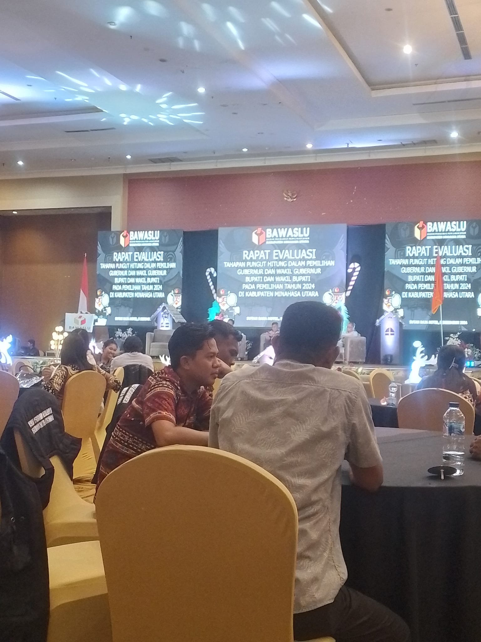 Dalam sambutannya Ketua Rocky Ambar mengatakan, “Puji dan syukur kehadiran Tuhan yang maha kuasa hari ini kita semua boleh ada dalam satu kegiatan Rapat Evaluasi di mana pasca kita melaksanakan pungut hitung pada pemilihan Gubernur dan Wakil Gubernur dan Bupati dan Wakil Bupati tahun 2024 di Kabupaten Minahasa Utara.