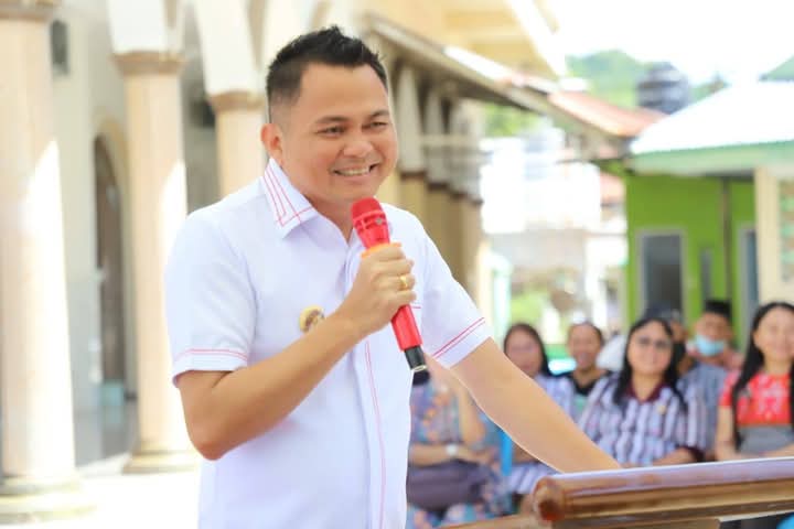 Mitra. Seputarsulutnews.co.- – Bupati Minahasa Tenggara (Mitra) Ronald Kandoli didampingi Ketua TP-PKK Mitra, Stefa Kandoli Antou menyalurkan bantuan hewan kurban sebanyak 7 Ekor Sapi secara simbolis, di Masjid Al Amin Desa Belang, Kecamatan Belang hari ini,Kamis (5/6-2025).