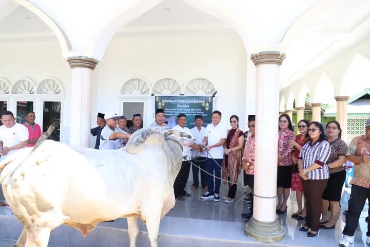 Dikatakan Kandoli, perlu diketahui bersama, hewan kurban yang disalurkan ada yang merupakan bantuan dari Presiden Prabowo sebanyak 1 ekor sapi yang diterima pada jemaah Al Amin Belang, selanjutnya sebanyak 6 ekor hewan kurban sapi diberikan kepada jemaah Masjid Nurul Hasanah Ratahan.