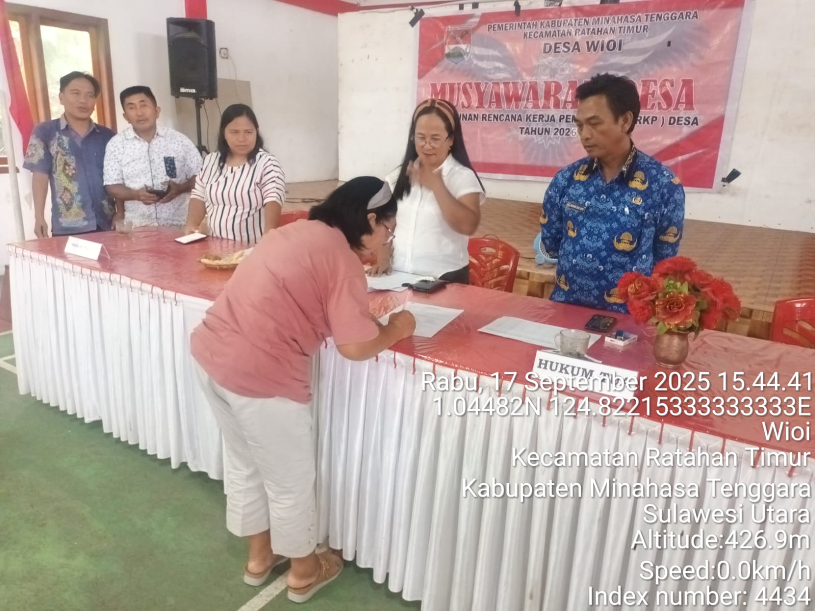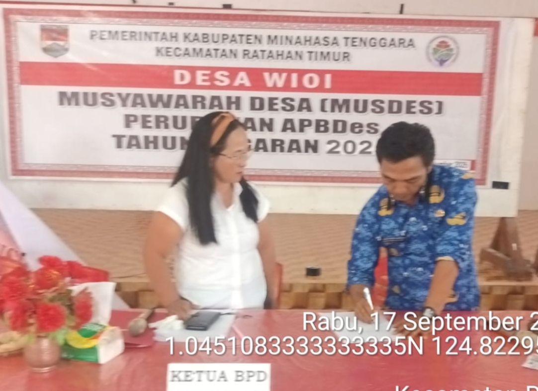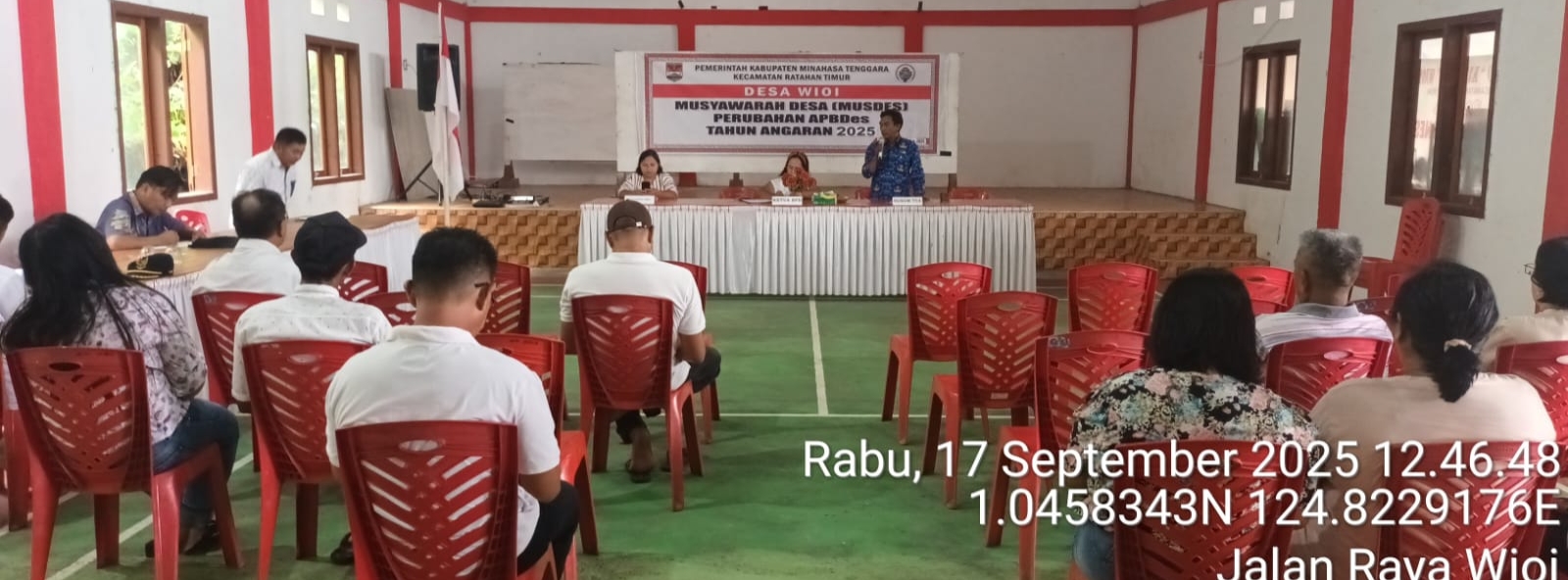 Mitra.Seputarsulutnews.co.- Badan Permusyawaratan Desa (BPD) bersama Pemerintah Desa Wioi Kecamatan Ratahan Timur (Ratim) melaksanakan Musyawarah Desa (Musdes) Perubahan APBDes tahun anggaran 2025 dan penyusunan Rencana Kerja Pemerintah (RKP) Desa tahun anggaran 2026. Kegiatan Kedua Musdes tersebut dilaksanakan hari ini Rabu (17/09-2025) bertempat di BPU Desa Wioi dan dibuka secara resmi oleh Ketua BPD Olvi Paat. Dikataan Paat, Musdes perubahan APBDes tahun 2025 dilaksanakan karena mengingat ada beberapa program prioritas yang tertata dalam APBDes harus dikerjakan dan ada juga yang tidak dapat dilaksanakan. Dan dalam Musdes perubahan telah disepakati beberapa kegiatan/ program pembiayaan digeser pada pembiayaan mendesak seperti pengadaan pompa air pemadam kebakaran (Damkar), biaya Bintek operator siskuades dan Ketua TP PKK Desa.