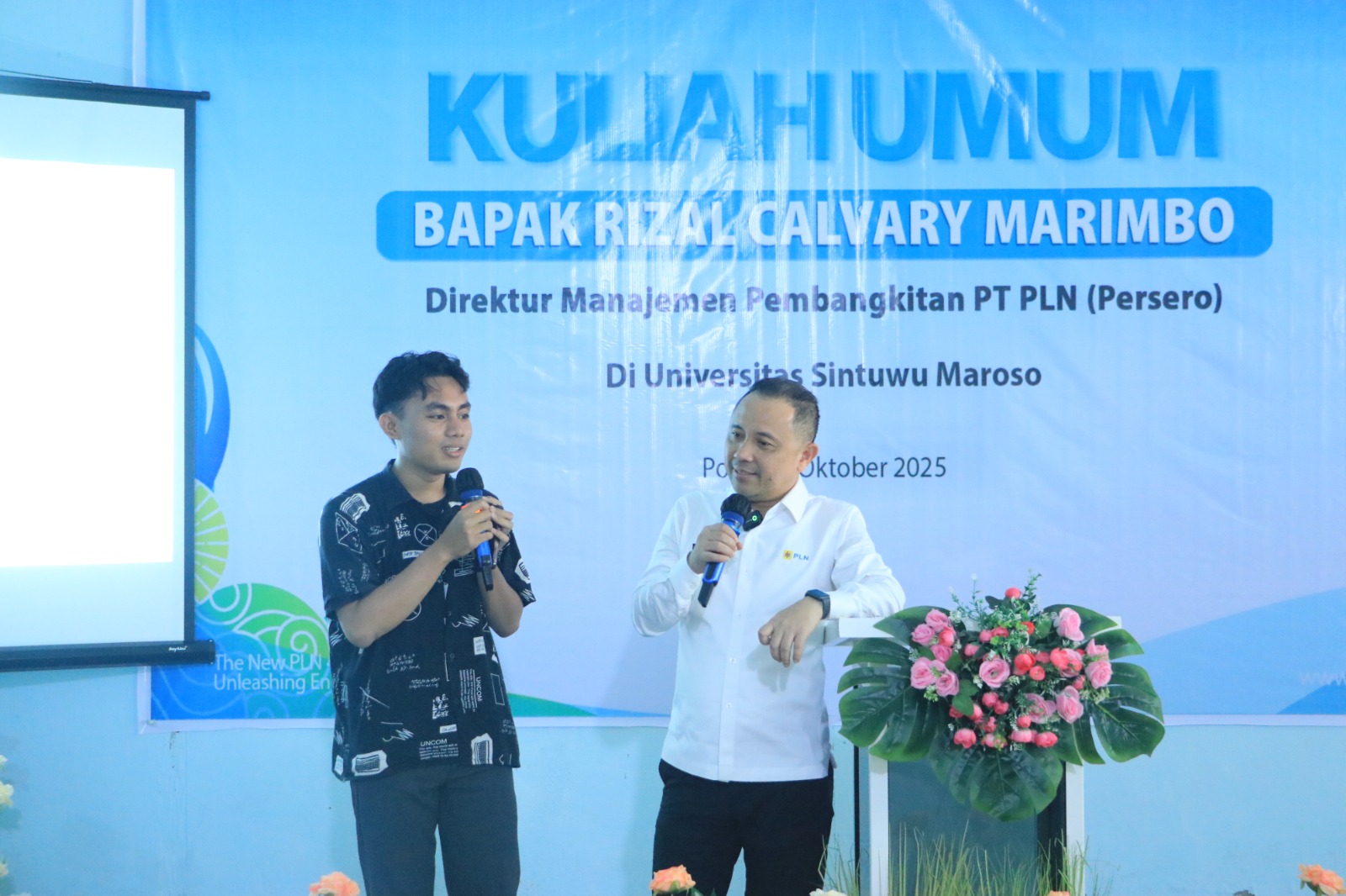 Seputarsulutnews.co, Poso– PLT Rektor Universitas Sintuwu Maroso, Dr. Novalita Fransisca Tungka, S.S., M.Pd, menyampaikan apresiasi setinggi-tingginya atas kehadiran dan materi yang disampaikan kepada Direktur Manajemen Pembangkitan PT PLN (Persero), Rizal Calvary Marimbo dalam Kuliah Umum yang inspiratif di Universitas Sintuwu Maroso (Unsimar), Poso, Jumat (24/10/2025).