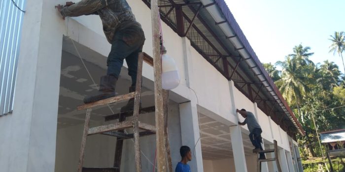 Lanjut Danramil Peltu Johan Pukoliwutang mengatakan bahwa pekerjaan hari ini di KDKMP yang ada di Desa Poniki Kecamatan Pasan Kabupaten Minahasa Tenggara (Mitra), sementara penyelesaian pemasangan plafon, pemasangan atap dan pemasangan rangka clding serta Pemasangan keramik (tehel). Progrest Pekerjaan hingga saat ini, Jumat (17/04-2026) sudah mencapai 64,80 persen.